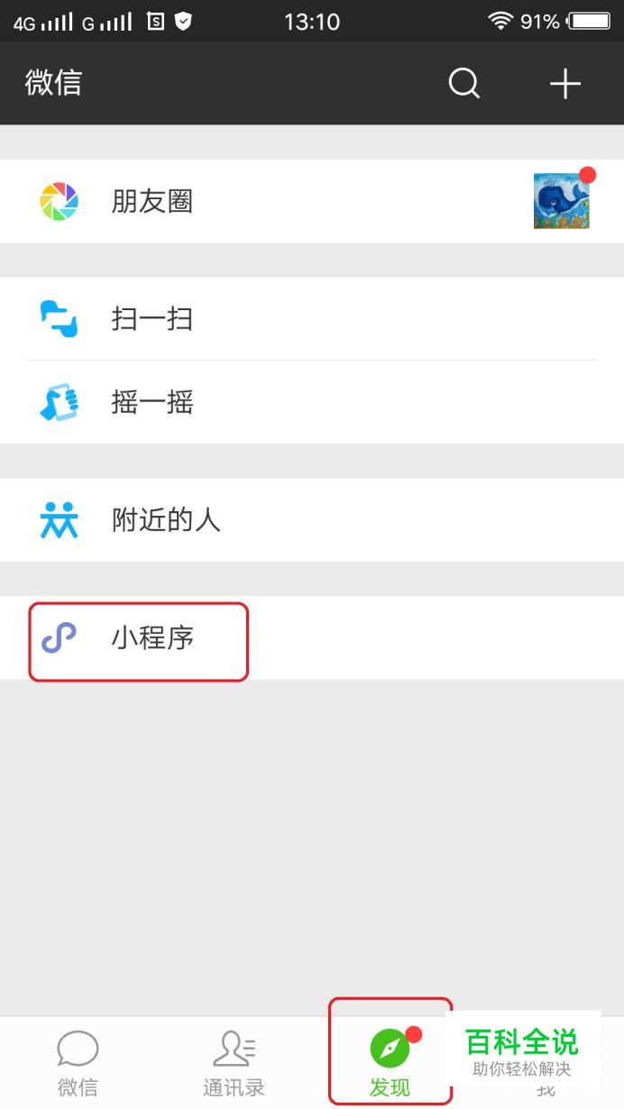 首先,我们打开手机微信,点击“发现”,“小程序”。