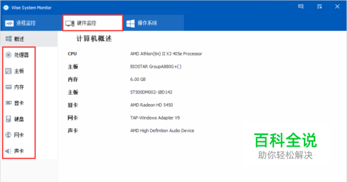 2:硬件监控会详细列出用户计算机硬件信息:如CPU,主板,内存,显卡,网卡和声卡。