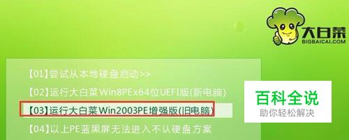 将一个大白菜u盘插入电脑,重启,引导u盘进入win2003pe系统,如下图所示: