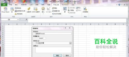 点击录制宏,在宏名中输入我们要创建的宏的名字。比如我在这儿要创建一个合并多个excel的宏。保存在个人宏工作簿。确定。随即再点击停止录制宏。 然后再点击宏,此时会弹出我们刚创建的宏的名字。点击编辑,一般会提示“不能在隐藏工作簿中编辑宏,请选定“取消窗口隐藏”命令以显示工作簿”。这是因为个人宏工作簿在默认情况下是被隐藏的,要想能对其编辑只需在视图—窗口—取消隐藏即可。但这里可以不用这样做。直接点击查看代码或者用Alt+F11即可打开代码编辑界面。