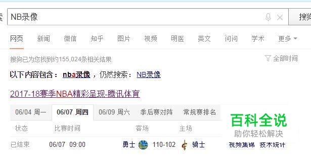 首先在搜狗浏览器中输入NBA录像并点击回车键,如下图所示。