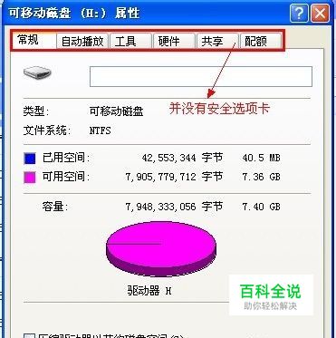 鼠标右键单击U盘,打开属性窗口时,发现选项卡中并没有“安全”这一项,那么我们就无法为你自己的U盘设置安全权限了,碰到这种情况,小编告诉你一个解决方法,轻松找回安全选项。