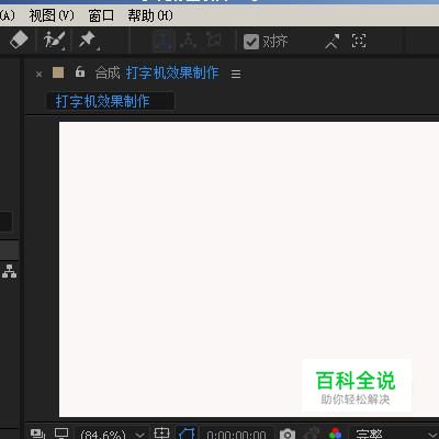 这时,打字机效果已自动生成。在时间线这里,把指针移到0秒处。合成窗口中的文字已不见了。