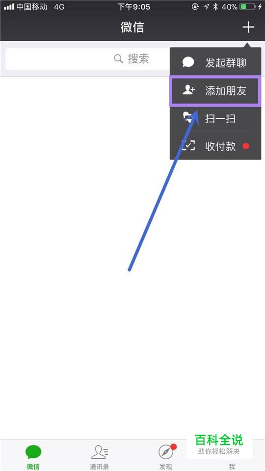 首先点击微信中的添加朋友,如下图所示。