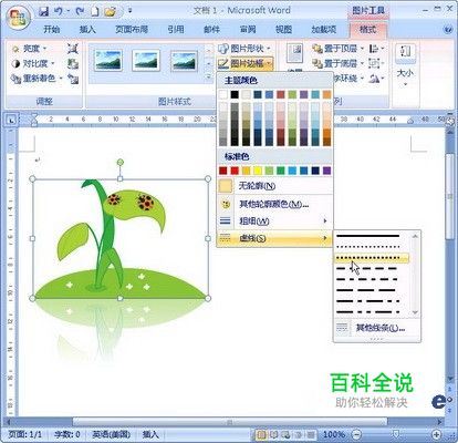 在Word 2007文档中,用户可以为选中的剪贴画设置多种颜色、多种粗细尺寸的实线边框或虚线边框。实际上,当用户使用Word 2007预设的剪贴画样式时,某些样式已经应用了剪贴画边框。当然,用户也可以根据实际需要自定义剪贴画边框,操作步骤如下所述。
