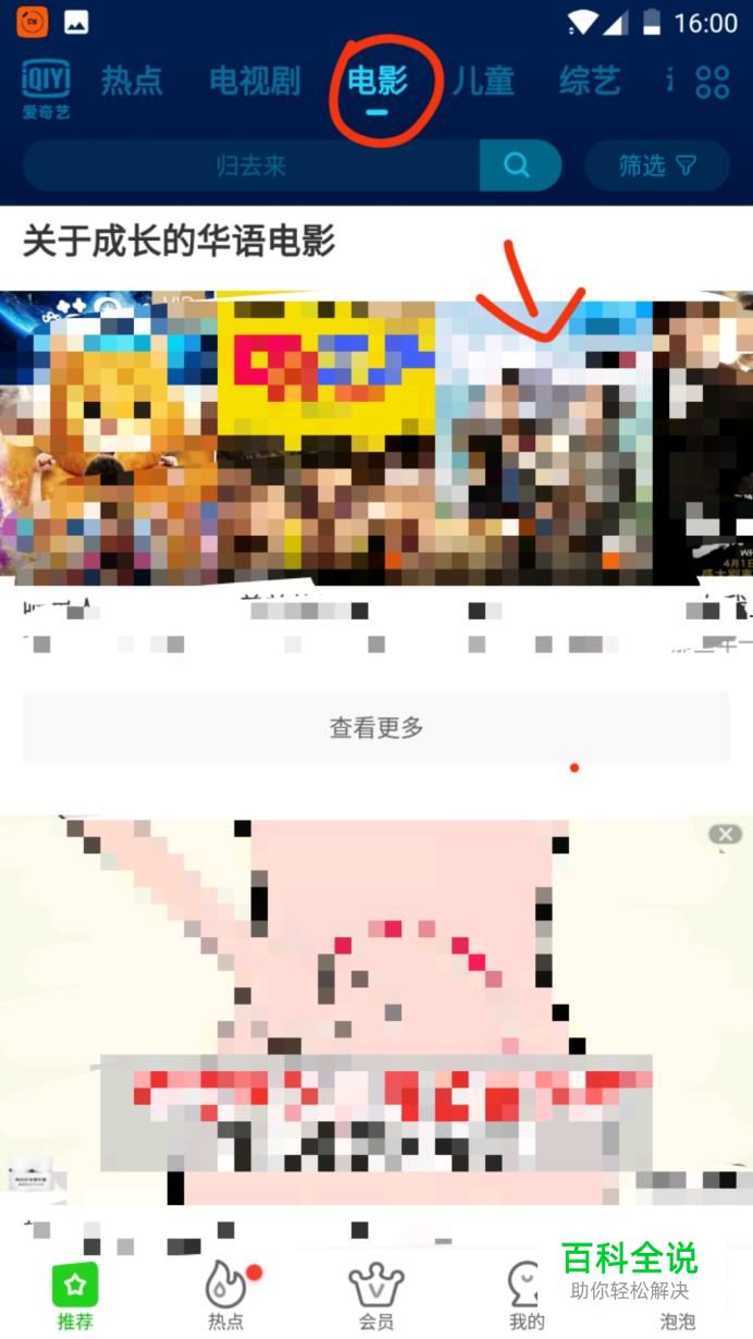 在“爱奇异”上方点击电影,选择其中一场电影,点击进入