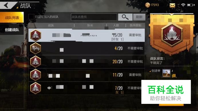 如图即为成功加入战队之后的页面,这样就可以和同一战队的好友一起吃鸡了。