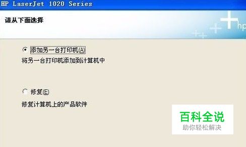 系统会提示是安装一台打印机还是修复本机程序,如果是新的打印机则先添加选项,如果修复程序则点“修复”。