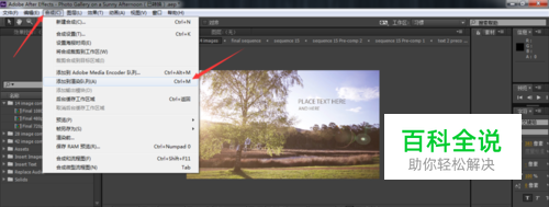 按快捷键【Ctrl+M】或者点击【合成】-【添加到渲染列队】这样我们就把我们需要渲染的输出合成添加到了渲染列队了。