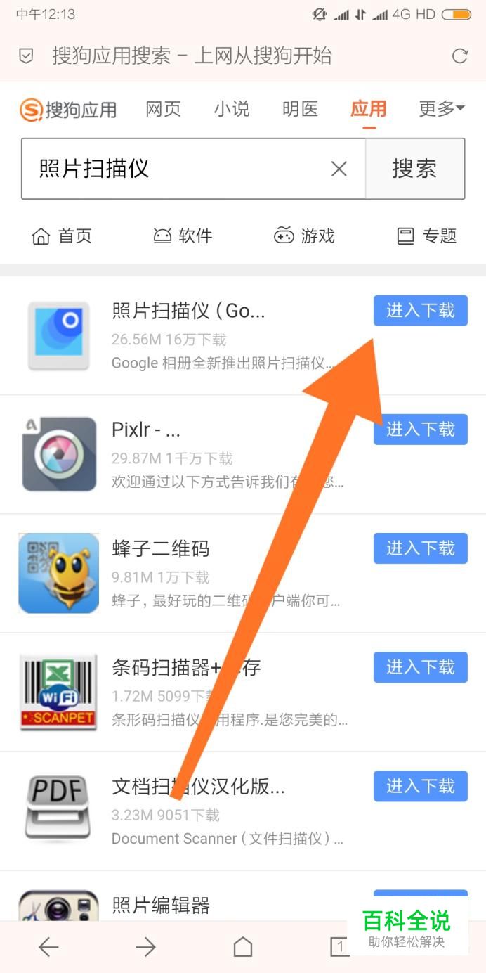 首先使用搜狗搜索“照片扫描仪”,完成软件的下载安装。