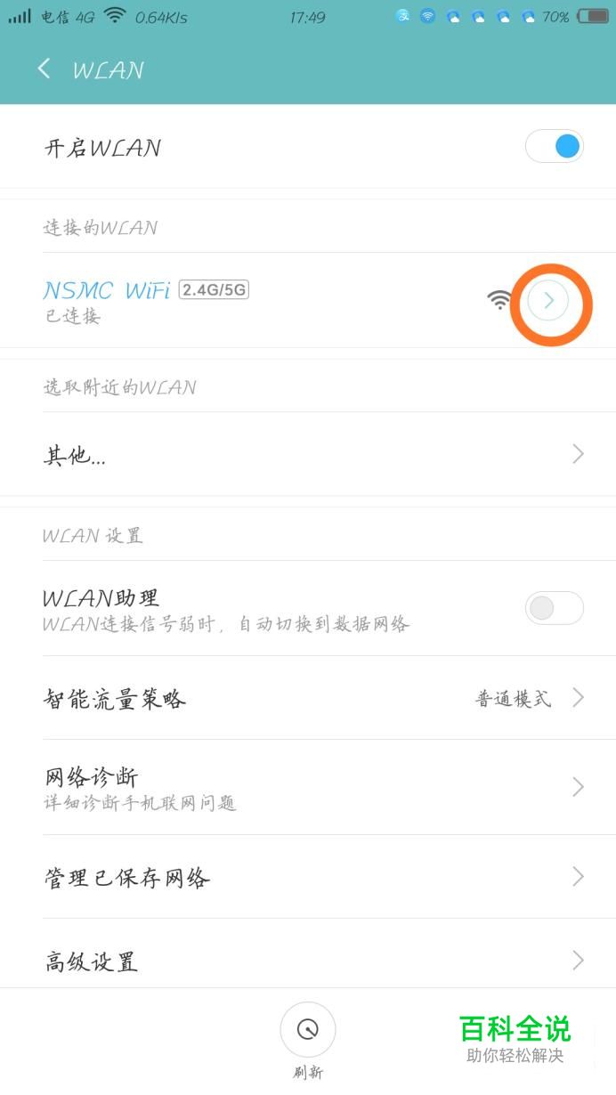 使用WLAN上网的朋友们,可以更改WiFi的dns来进行提速,首先进入WiFi设置,点击圈起来的箭头。