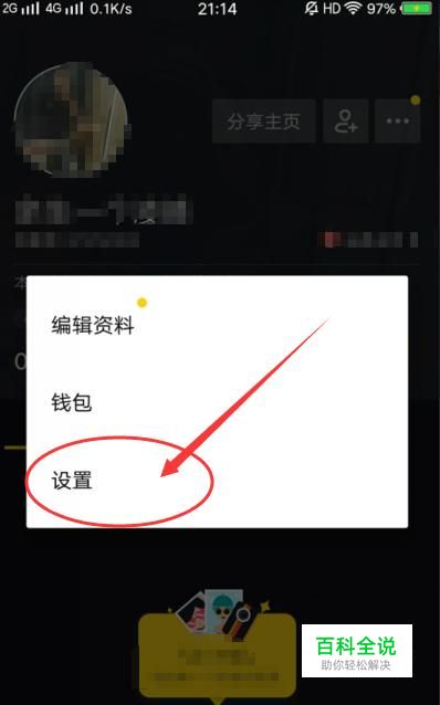弹出三个选项,分别是编辑资料、钱包、设置,我们点击设置,如图所示。