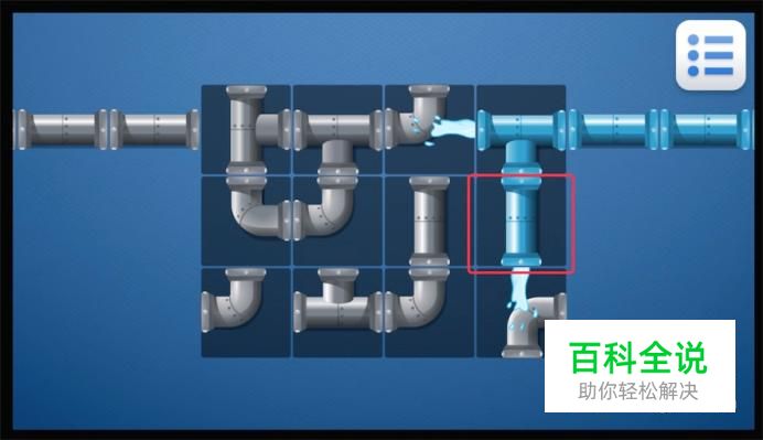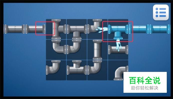 点击最左边的三向水管,接通水源,可以发现水源顺利流通到左边的水管了。
