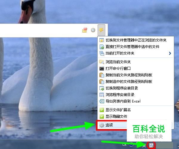 打开listary选项界面(一般有以下几种方法): ①启动搜索栏后,点击第三个命令按钮,点击"选项"进入选项界面。 ②在电脑任务栏中,单击listary托盘图标,点击"选项"进入选项界面。 ③设置好快捷键,显示弹出菜单,从菜单中点击"选项"进入选项界面。