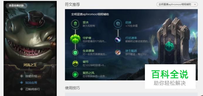 副符文第一个点:启迪,启迪的符文效果为塔魔增加生命值,使其作为坦克辅助更加肉。