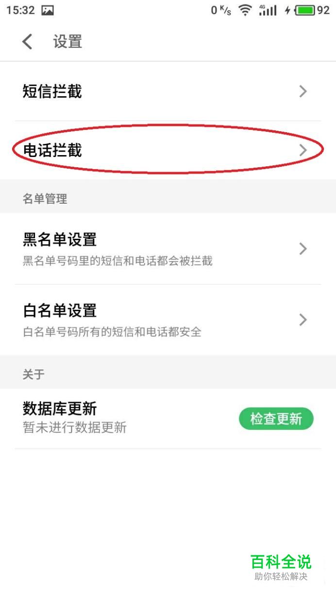 打开设置后,现在我们设置拦截骚扰电话,我们在界面中找到“电话拦截”,点击并进入。