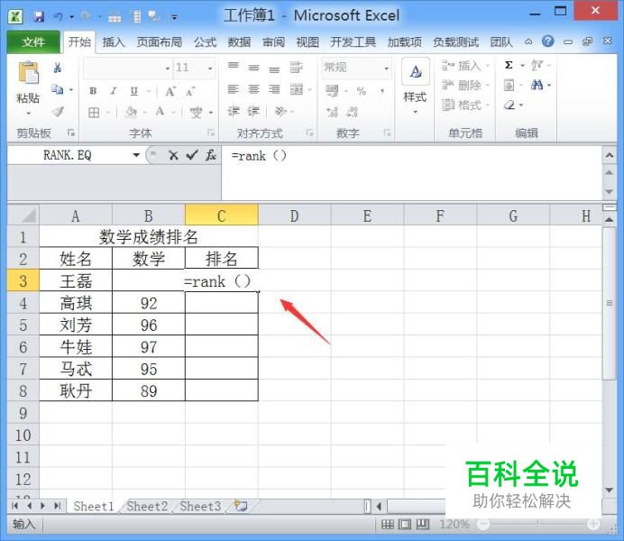 输入函数之后,此时我们可以按下键盘上的回车键,就可以得到排名的结果了,如图所示:
