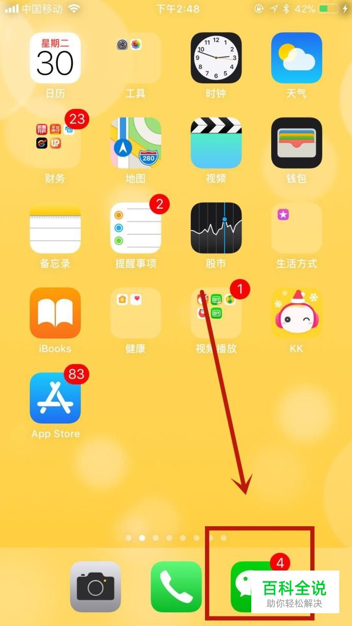 首先在我们的手机桌面上找到微信并点击它,如下图所示。
