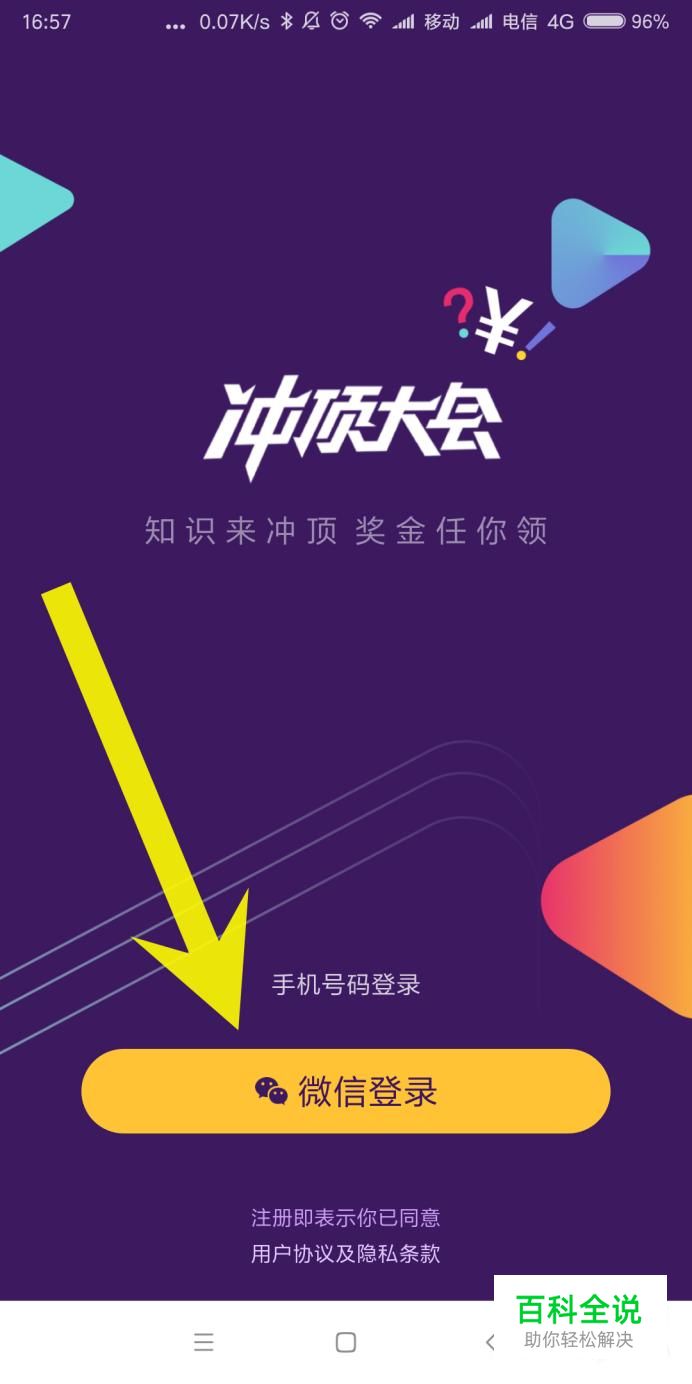 接着我们需要登陆冲顶大会,我们可以使用手机号登录,或者使用微信登录。