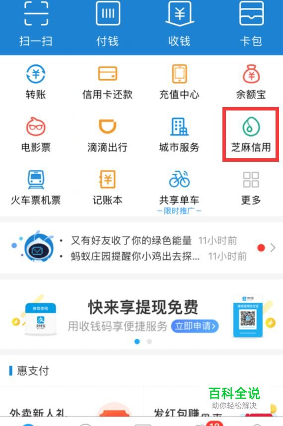 登录后,进入支付宝App主页面,找到“芝麻信用”功能项,点击进入。