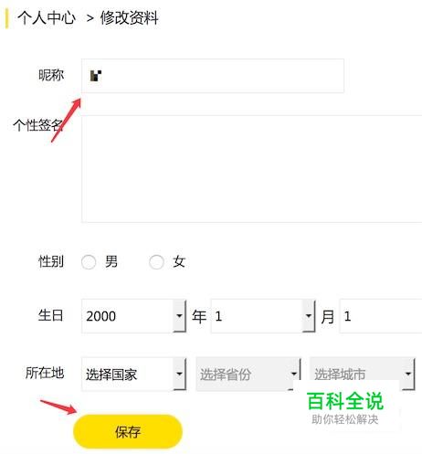 点击后,打开了编辑页面,我们在这里输入新的昵称,点击保存按钮就可以了。