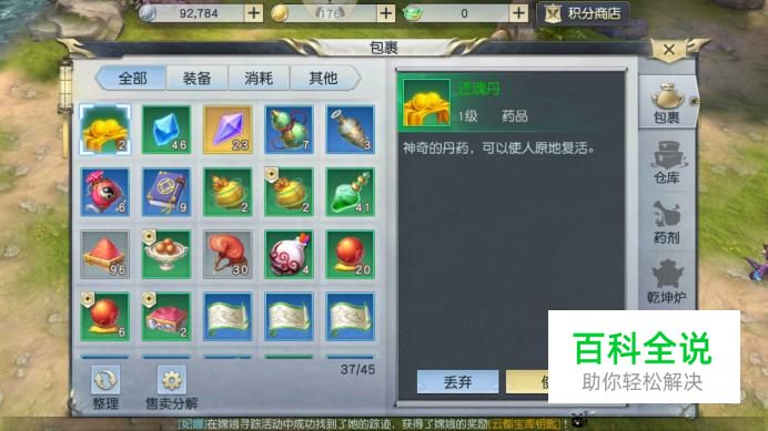 进入游戏主界面,在右侧选项中点击“背包”进入背包界面。