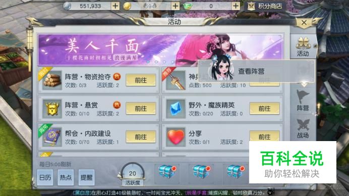 进入活动界面,在右侧选项中点击“阵营”