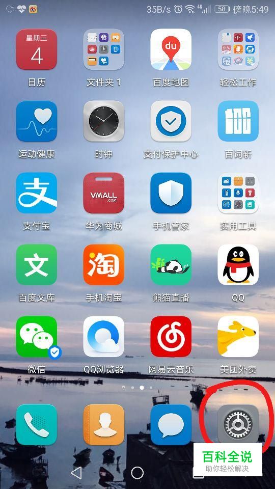 首先点击手机屏幕右下角的“设置”,如图所示。