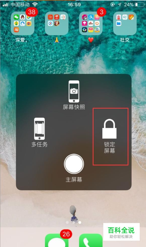 快速锁定屏幕 点击“AssisTiveTouch”,把“锁定屏幕”的功能放到顶层菜单里,即可快速锁定屏幕。