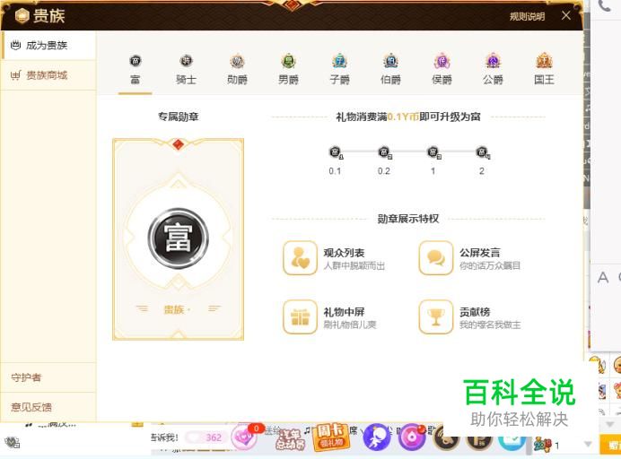 点击右上角的【规则说明】,可以了解什么是贵族、如何成为贵族等