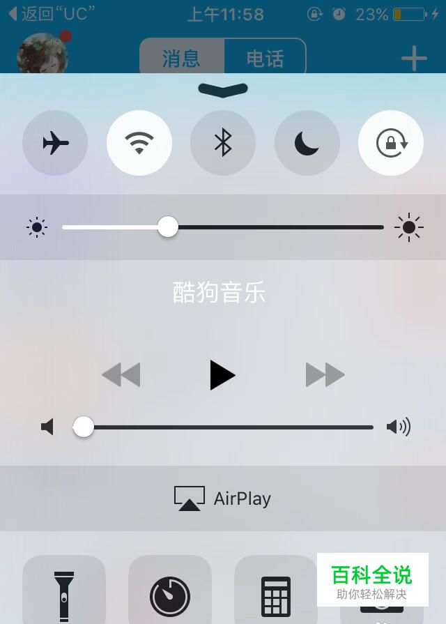 然后打开苹果手机的“控制界面”(手指从手机屏幕的底部向上滑动),点击“控制界面”中的“AirPlay”选项。