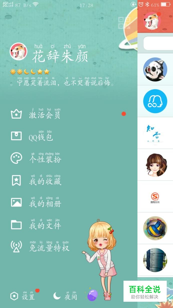 进入QQ,向右滑动,左下角有一个设置按钮,点击。