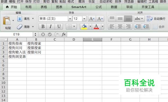 打开Excel,并打开一个有测试数据的文档。假设要查找‘搜狗’二个字在文档里出现的次数。