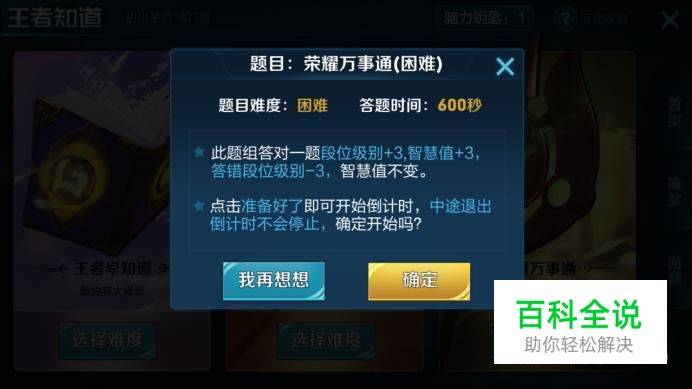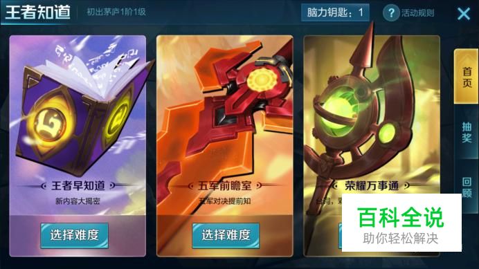 详细规则,大家可以在界面右上角进行查看,小编就不赘述了,提醒一点就是每次对战胜利才能得到王者知道的脑力钥匙哦!