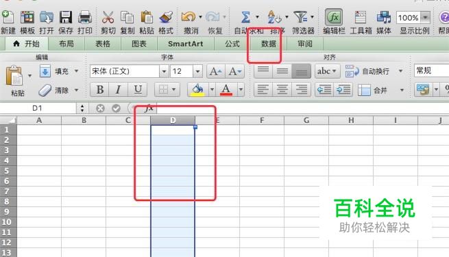 点击选中需要设置下拉菜单的列,并点击工具栏上的‘数据’