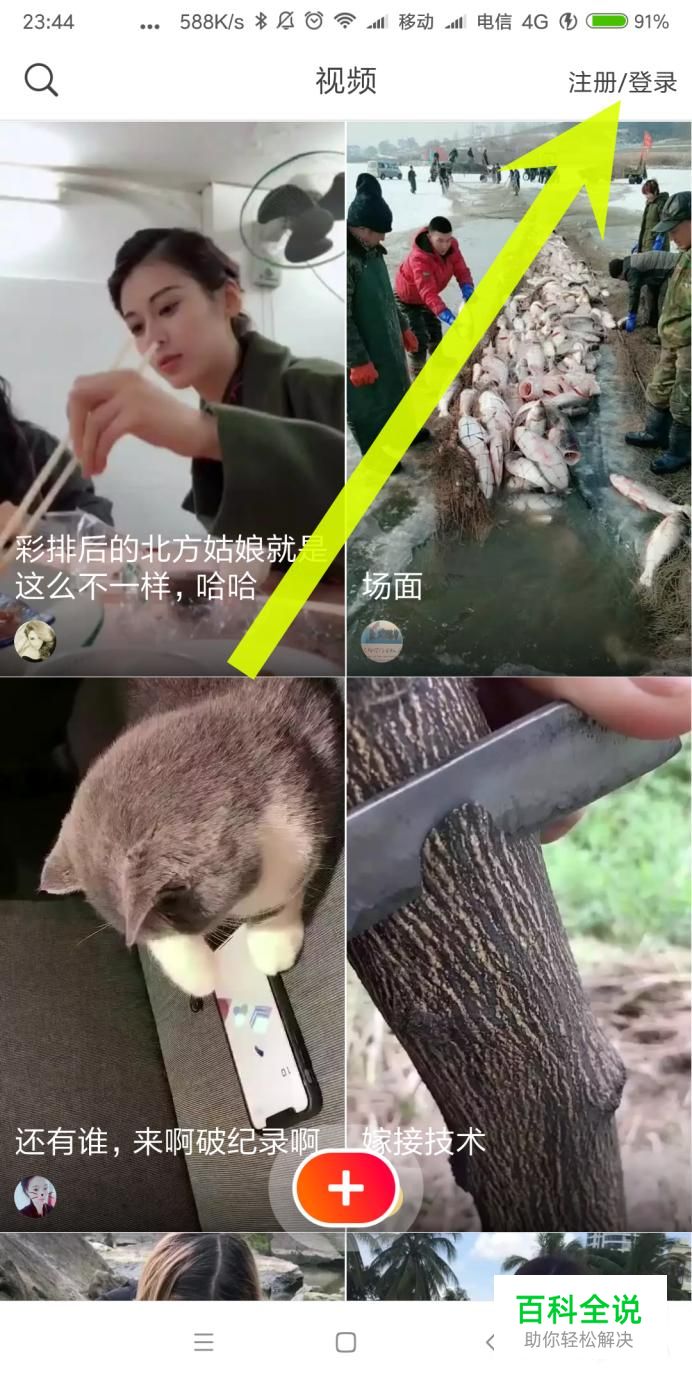 火山小视频打开之后,我们点击右上角的注册或者登陆按钮。
