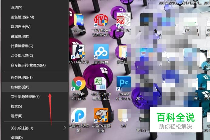 在开始菜单栏右击鼠标,在弹出的对话框中选择“控制面板”点击进入控制面板。