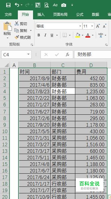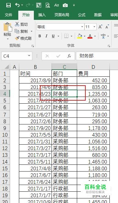 首先,我们先打开一个EXCEL工作簿,工作簿里面的原始数据。我们先将鼠标放在原始数据中的任意一个单元格中,比如我放在了C4单元格。