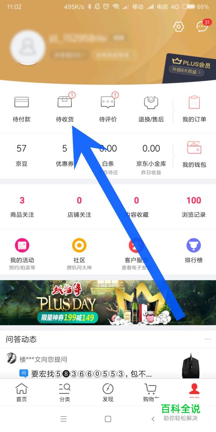 在个人主页页面,我们点击上方的代收货物,就可以在里面看到我们所购买的货物了。