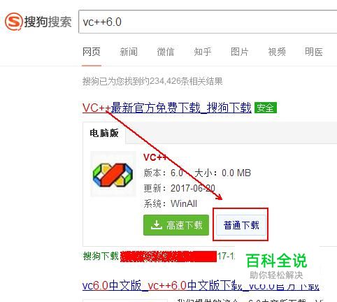在搜狗搜索引擎中输入关键词“vc++6.0”