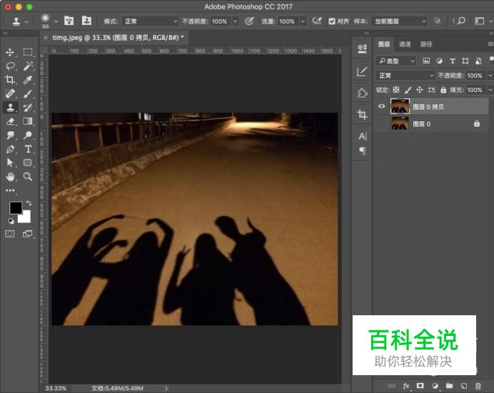 打开PS软件,将需要处理的图片拖入PS中打开,如下图,我们去掉地上的人影为例进行操作。