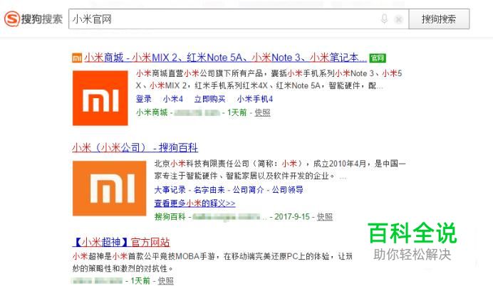 在搜狗搜索页面输入“小米官网”,在搜索结果页面点击第一个。