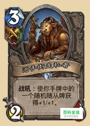 污手街走私者,使手牌中随机随从获得加一加一,本身2点攻击在3费有点疲软,因为是随机加所以存在不稳定,整体评价一般。