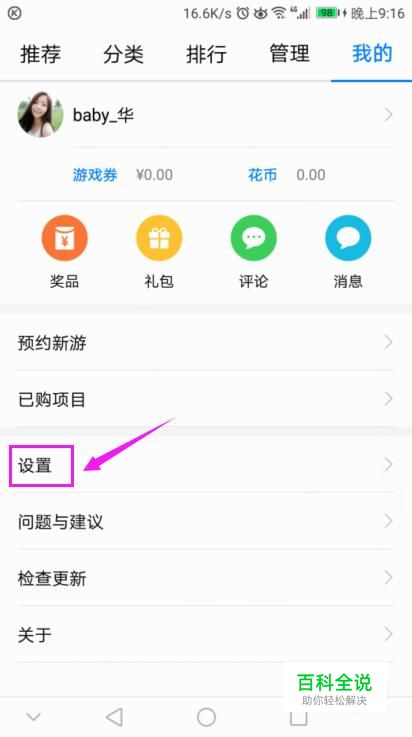 接着来到我的,我们点击设置,如图所示。