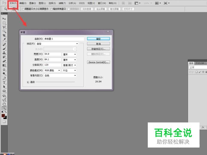 打开软件PS,建立一个图形空间,这里采用了A1大小的图形绘制空间,将图层管理界面调用出来。