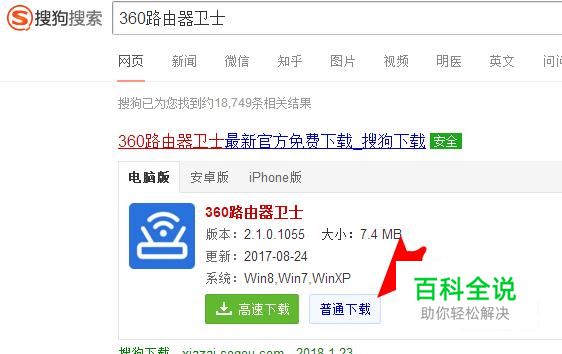 搜狗搜索下载360路由卫士,如图,下载。