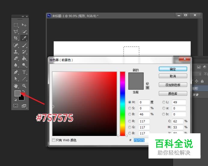 将我们的前景颜色设为:#757575,点击色块即可调整颜色。