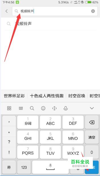 然后在搜索栏输入“视频铃声”,点击搜索。