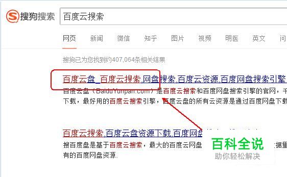 在“搜狗搜索引擎”中输入关键词“百度云搜索”