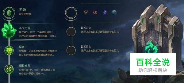 主符文的选择方面,肯定是选择坚决系的符文了,坚决系符文可以让巨魔在中后期变得更肉,并且后期输出也能够得到保障。
